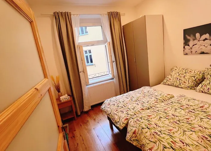 De gasten hebben toegang tot een complete keuken, uitgerust met een oven en een vaatwasser. Het kost op 3 km van Centraal van Praag station.